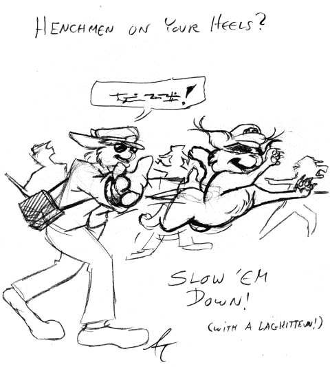 Lagkittens are my particular anthropomorphization of the sometimes muttered about 'lagbeasts', horrible creatures that misplace data packets and munge people's connections. Except in my case, having a bias, I pictured them as little kittens that would ravage the network and then blink so cutely at you that you couldn't help but go 'Awwww' and pet the 'lil thangs.