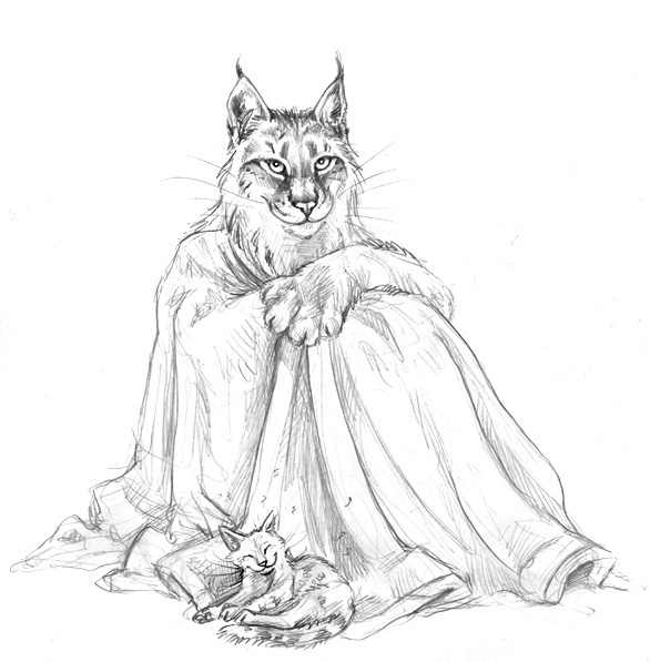 Kenket draws Lynx under a blankey, with a purring Lagkitten on his feet! Amazing pencil work.